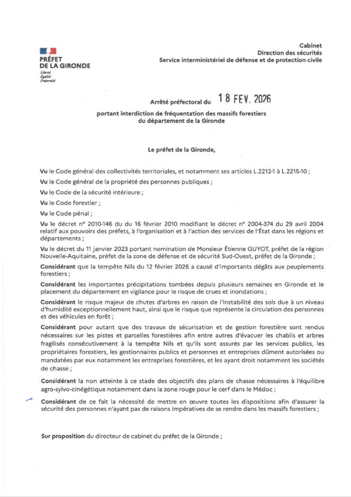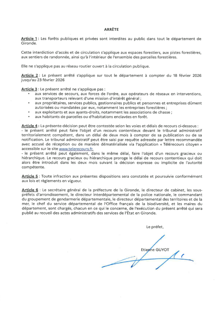 Arrêté préfectoral de fermeture du massif forestier